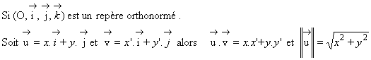 Produit scalaire dans le plan :